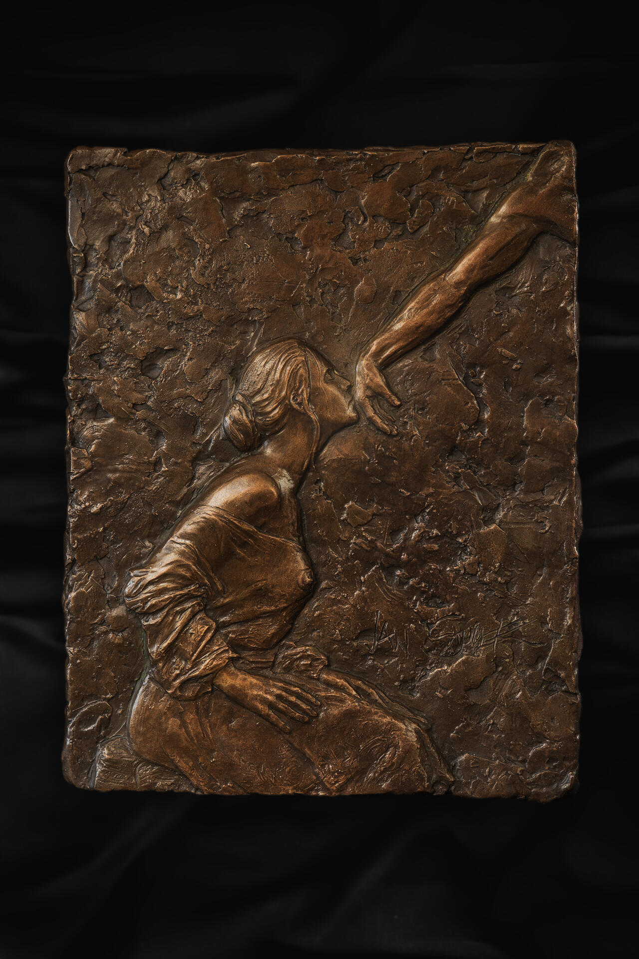 Zbývají 3 kusy. Celkem pouze 7 kusů odlitků. Originální bronzový reliéf. Číslováno, signováno, s certifikátem pravosti Jana Saudka - 40 × 32 cm
